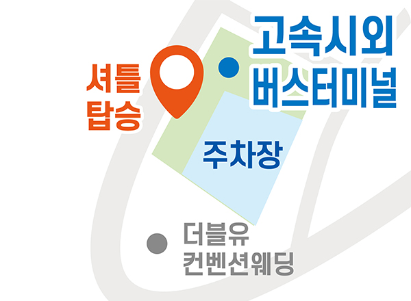 시외고속버스터미널 시외버스 승하차장 정류장에 박람회장 버스를 확인하시고 셔틀버스에 탑승해 주세요.